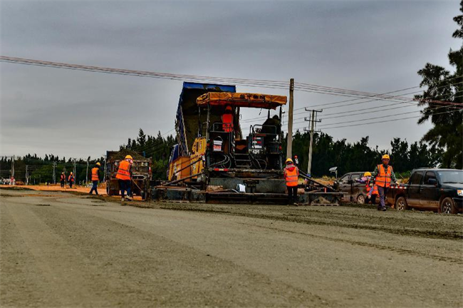 這次水穩(wěn)層攤鋪施工的是海濱一路,長(zhǎng)約1745米,路寬38米。該路段已于2023年3月31日開(kāi)始施工,在先后完成軟基處理、路基工程、雨水管道、電力管道、給水管道工程后,開(kāi)始了水穩(wěn)層攤鋪施工。