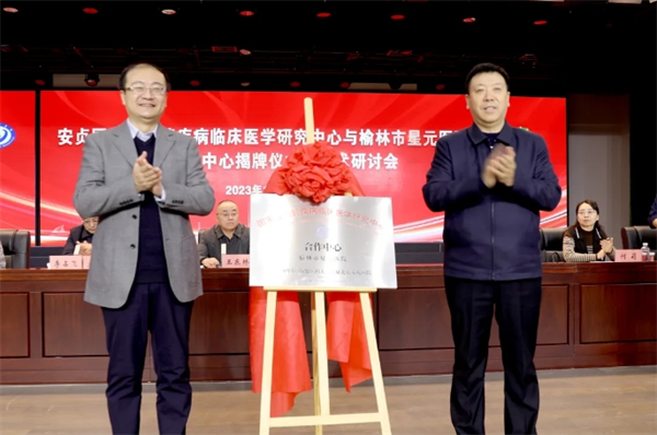 首都醫(yī)科大學附屬北京安貞醫(yī)院科技處處長于洋與中共榆陽區(qū)委書記李忠宏共同為國家心血管疾病臨床醫(yī)學研究中心榆林市合作中心揭牌