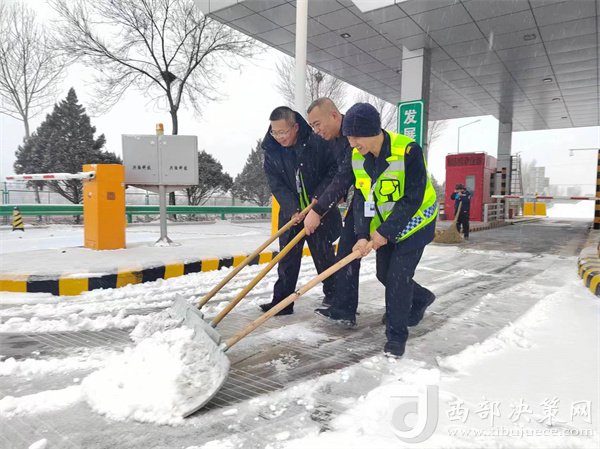 4日凌晨,雪花漸大,榆靖分公司第一時間啟動應(yīng)急預(yù)案,除雪隊伍立即出動,連夜除雪。黑夜里,警示燈閃爍,融雪劑撒布一輪又一輪;風(fēng)雪中,高速人的身影挺拔,動作利落、充滿力量。道路上,除雪車疾馳而過,揚(yáng)起千層雪、一幅幅繁忙的除雪景象。除雪中,各除雪隊伍加強(qiáng)與監(jiān)控分中心信息互動,及時溝通路上積雪情況,重點針對結(jié)冰及長上下陡坡、橋面和彎道等路段開展多輪次除雪作業(yè),確保第一時間清除路面積雪,盡快恢復(fù)道路通行條件。