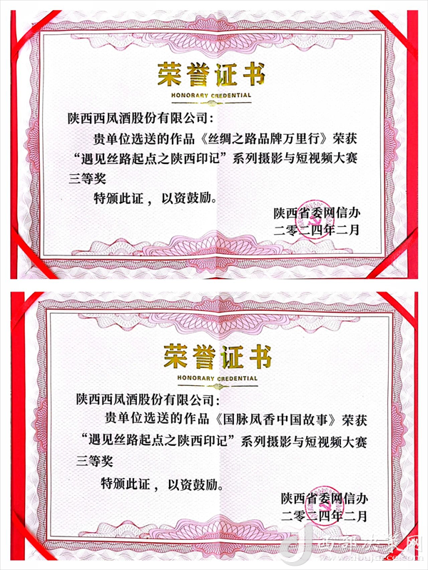 西部決策網(wǎng)訊(記者劉玉 韓宗憲 通訊員 雒文峰)2月4日,由陜西省委網(wǎng)信辦主辦,環(huán)球網(wǎng)承辦的“遇見絲路起點之陜西印記”系列攝影與短視頻大賽頒獎儀式在西安市東方大酒店隆重舉行。陜西省委網(wǎng)信辦副主任馬衛(wèi)東,環(huán)球網(wǎng)總經(jīng)理單成彪,大賽獲獎作品創(chuàng)作者及獲獎單位代表50余人出席頒獎儀式,西鳳股份公司榮獲大賽攝影與短視頻作品兩項大獎。